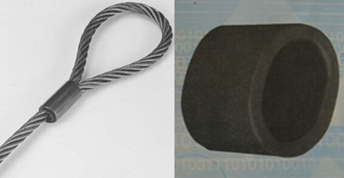 ![]() | ● For turnback wire rope splicing ● Special processed carbon steel ● Designed for lower temperature toughness ● Resists cracking when swaged (equals or exceeds stainless steel sleeves) ● Better swageability ● Stamp for identification after swaging |